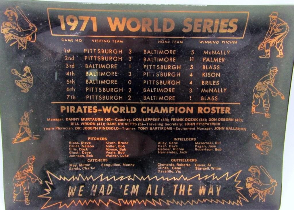 Pittsburgh Pirates 1971 World Series Smoked Glass Ashtrays, set of 2