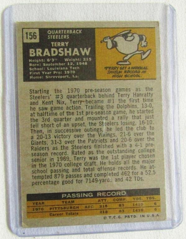 OVERALL LESSER CONDITION LOT includes #156 BRADSHAW ROOKIE VG, plus (13) OTHER STARS/ROOKIES VG (see pics)