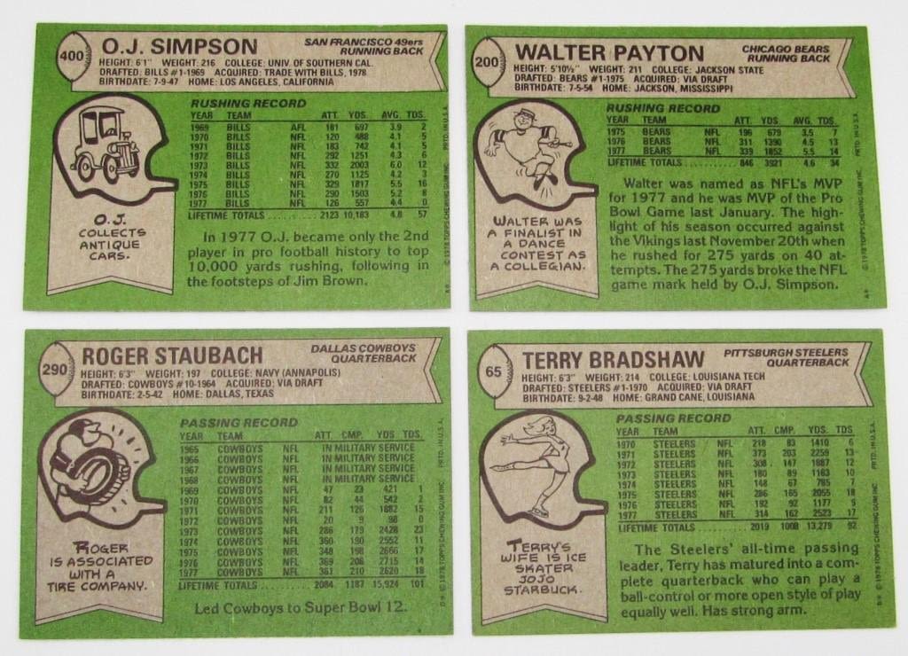 OVERALL EX -VGEX_ MOSTLY ALL STARS / HOFer / ROOKIES – STAUBACH, PAYTON, BRADSHAW, O.J. SIMPSON & MORE