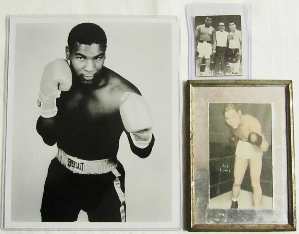 in FRAMED 5×7; ALI / CHRIS / ROCKY BUSINESS PROMOTER CARD CHRIS DUNDEE (has pin holes); 8×10 BLACK / WHITE MIKE TYSON PHOTO