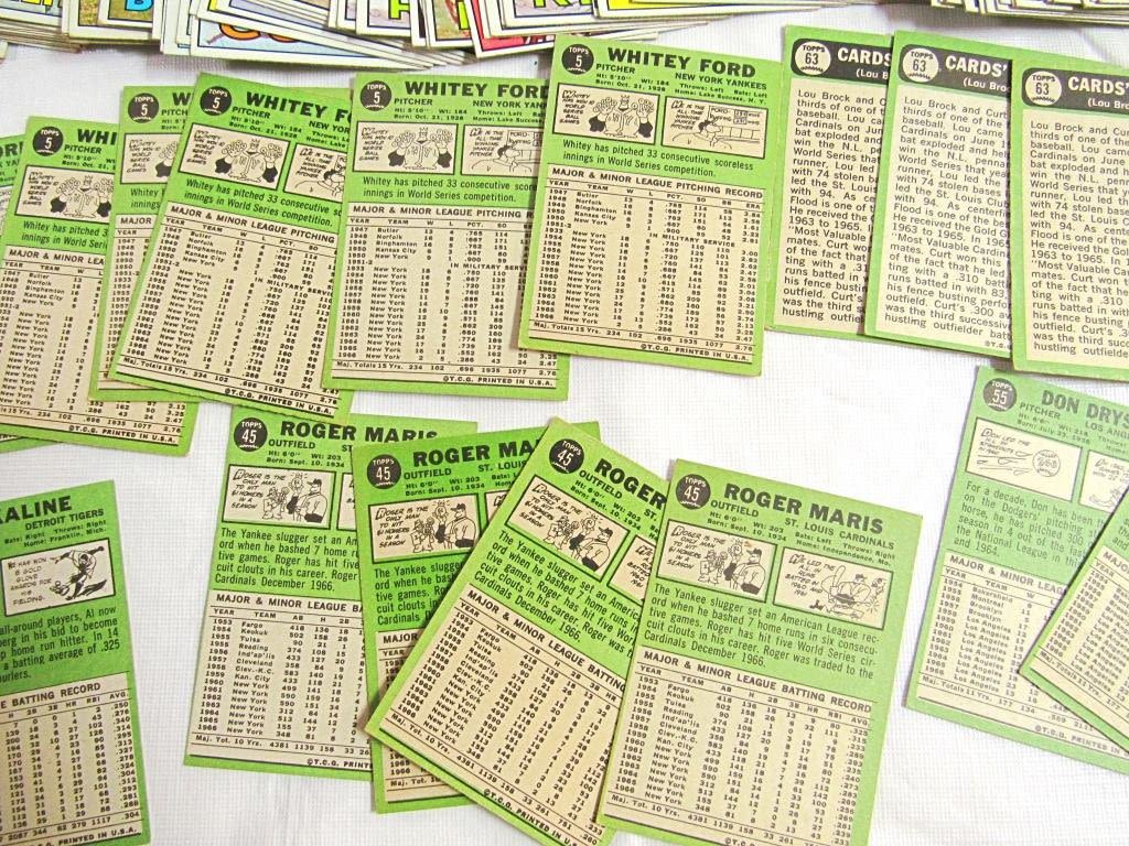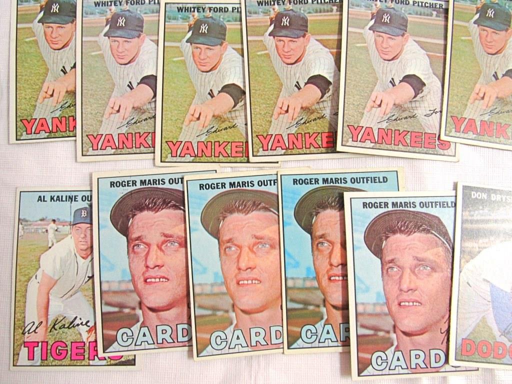 OVERALL VGEX/EX SOME BETTER, FEW LESSER – MOSTLY DIFFERENT w/SOME DUPLICATES includes (3) #1 THE CHAMPS VG/GOOD, (6) #5 WHITEY FORD EX/VGEX+, #30 KALINE EX, (4) #45 ROGER MARIS EX/VGEX, (3) #55 DON DRYSDALE EX, (3) #63