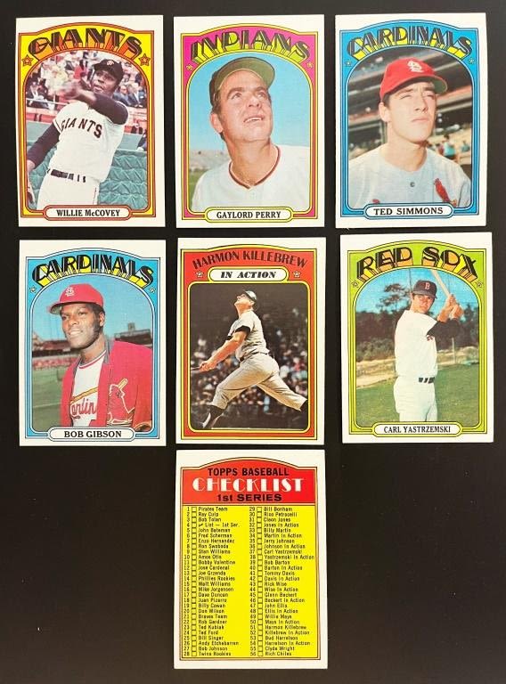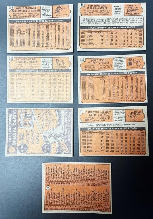 #4 CHECKLIST unmarked, #37 YAZ, #52 KILLEBREW, #130 GIBSON, #154 SIMMONS, #285 PERRY, #280 McCOVEY