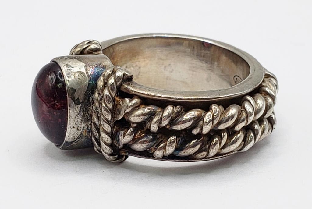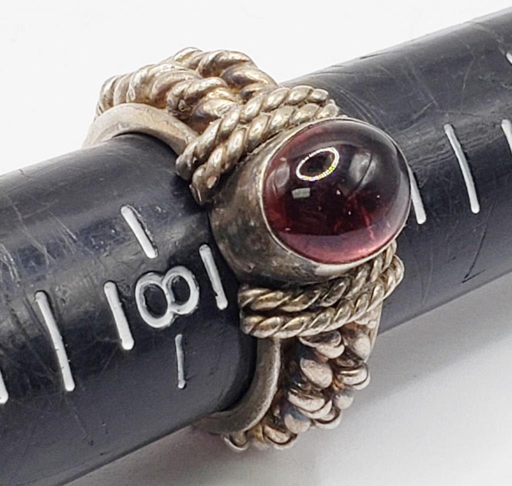 TRANSLUCENT MAROON CENTER STONE-RING SIZE 7-TOTAL 7.6 DWT