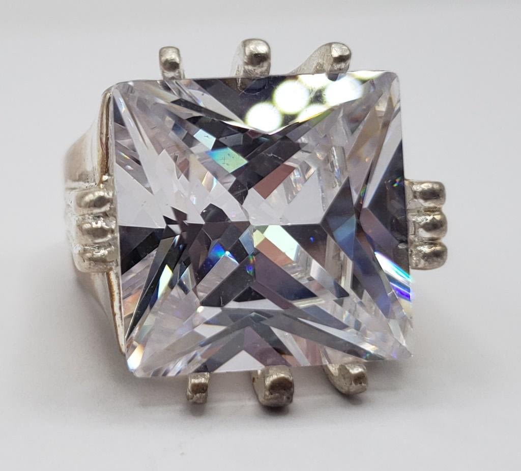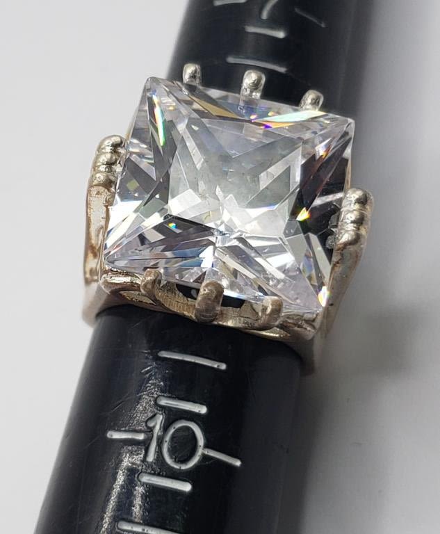 CLEAR CENTER STONE-RING SIZE 9-TOTAL 15.6 DWT