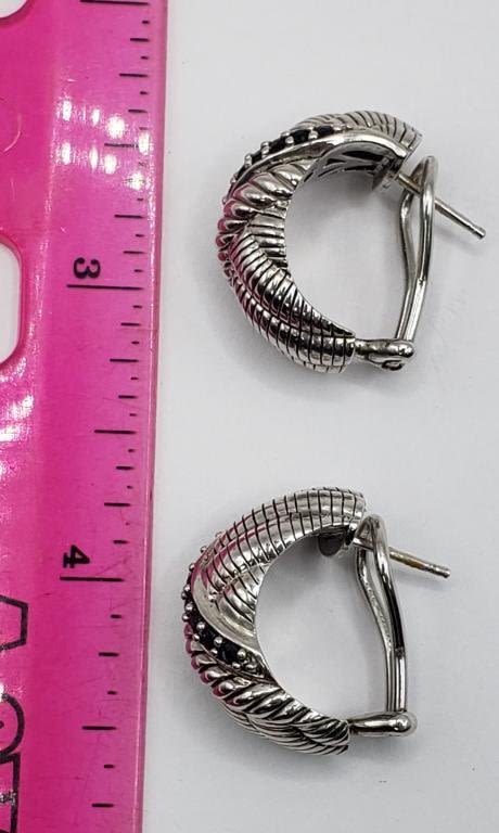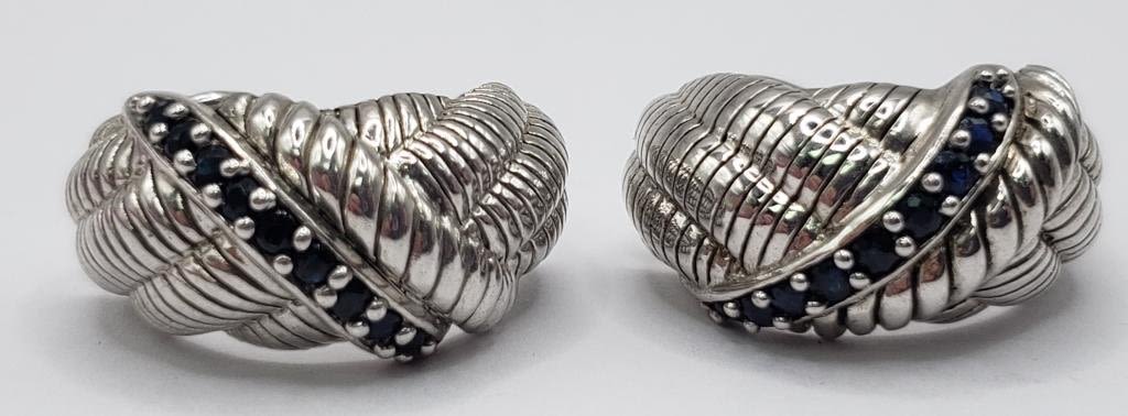 EARRINGS WITH NAVY BLUE STONES-TOTAL 9.4 DWT