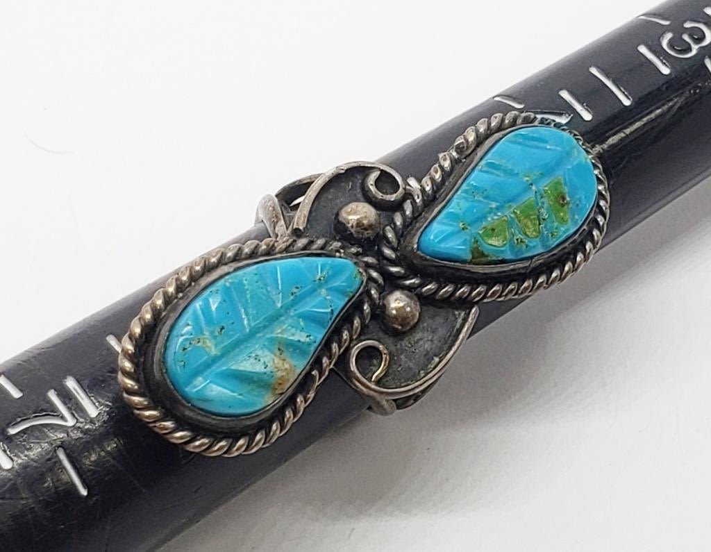 WITH CARVED TURQUOISE LEAF DESIGN-RING SIZE 5.5-TOTAL 5 DWT