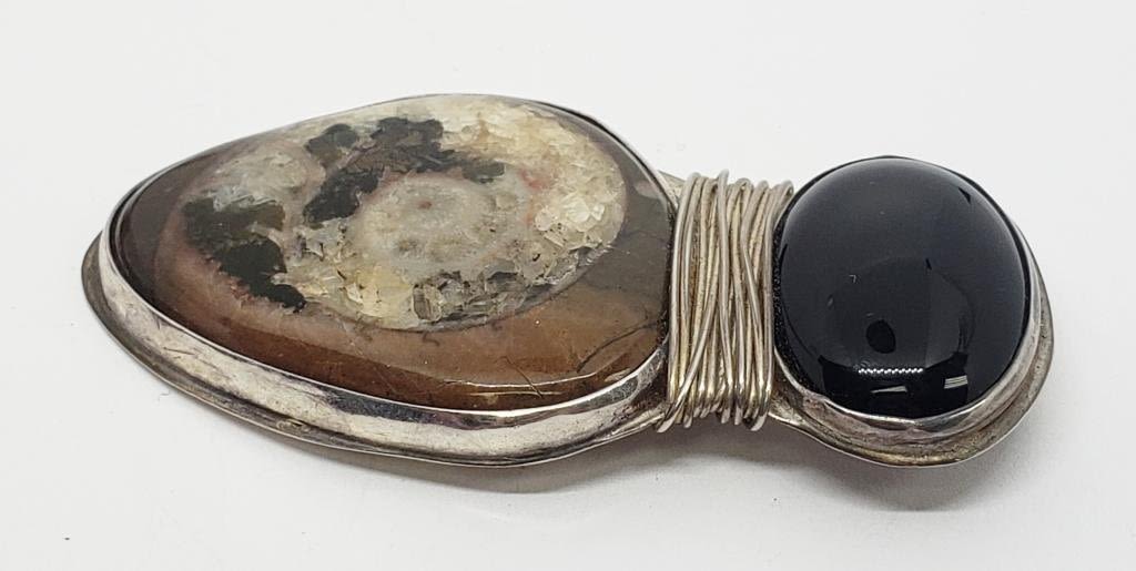 POLISHED NATURAL STONE-STERLING WRAPPED WIRE DESIGN-TOTAL 17.4 DWT