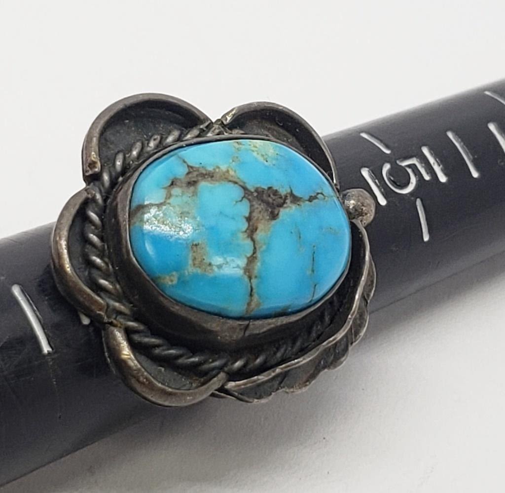 TURQUOISE CENTER STONE-RING SIZE 6.5-TOTAL 6 DWT