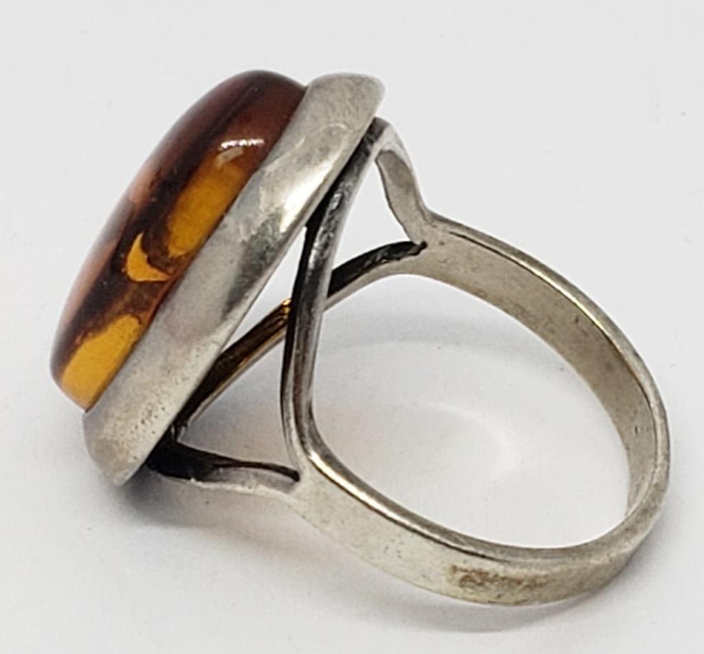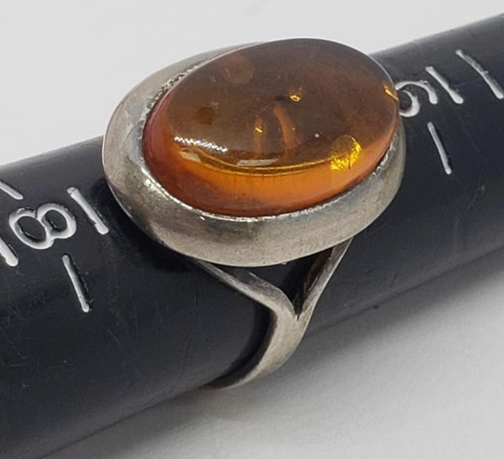 AMBER CENTER STONE-RING SIZE 7-TOTAL 3.5 DWT
