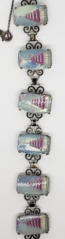 ORIENTAL BUILDING ETCHED IN GLASS-ENAMEL ACCENTS-TOTAL 19.7 DWT