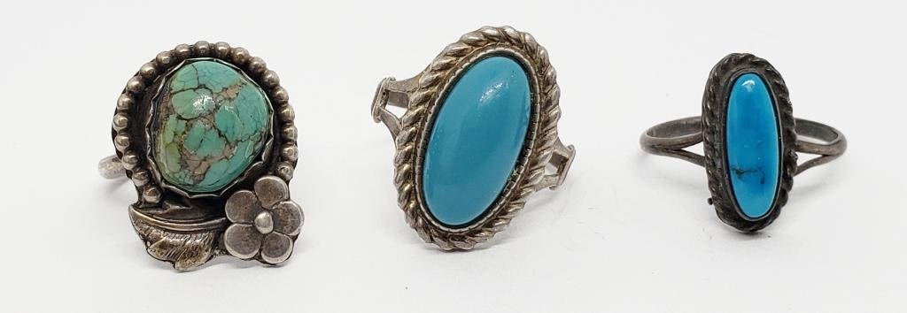 BEAUTY AND GREEN TURQUOISE CENTER STONES-VARIOUS SIZES 5-6-TOTAL 6.1 DWT