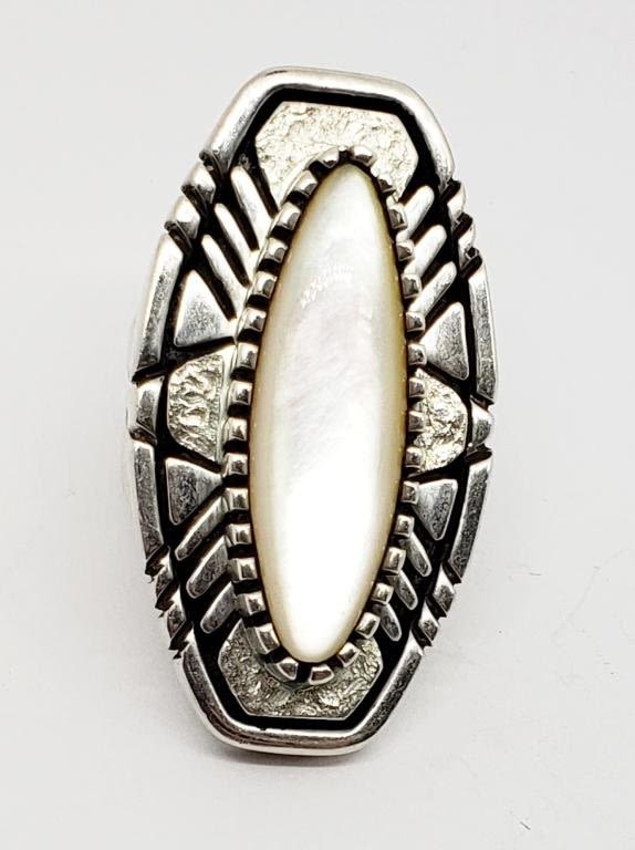 MOTHER OF PERAL CENTER STONE SIZE 7.5-HAS MAKERS MARK! TOTAL 14 DWT