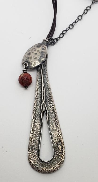 HAMMERED STERLING PENDANT/BEADS-TOTAL 13.7 DWT