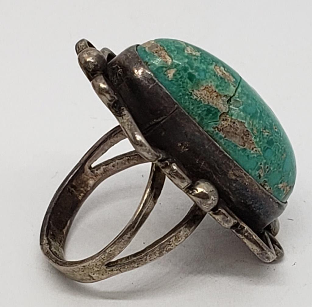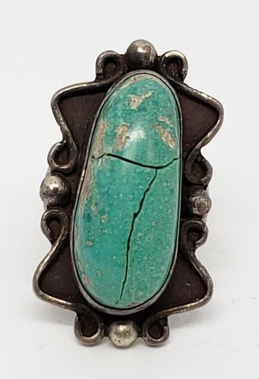 TURQUOISE CENTER STONE (CRACKED)RING SIZE 5-TOTAL 6 DWT
