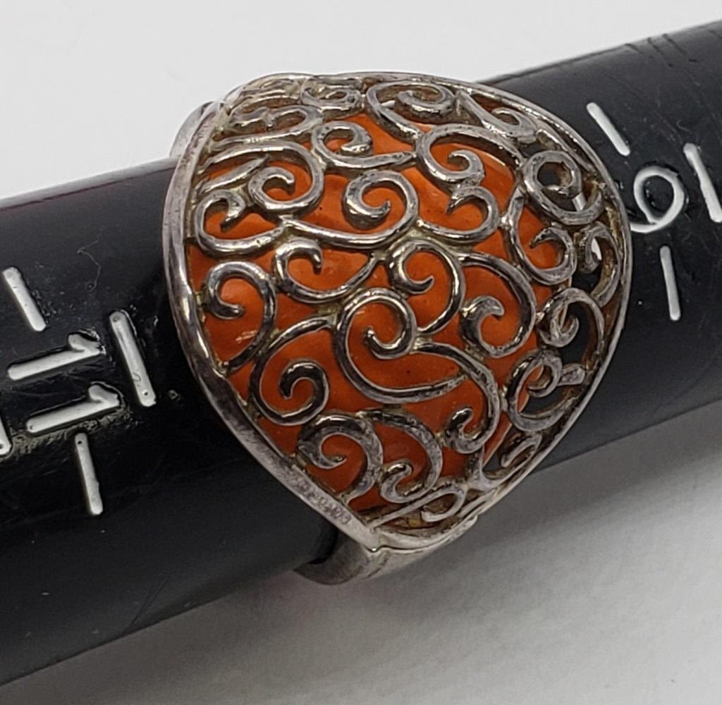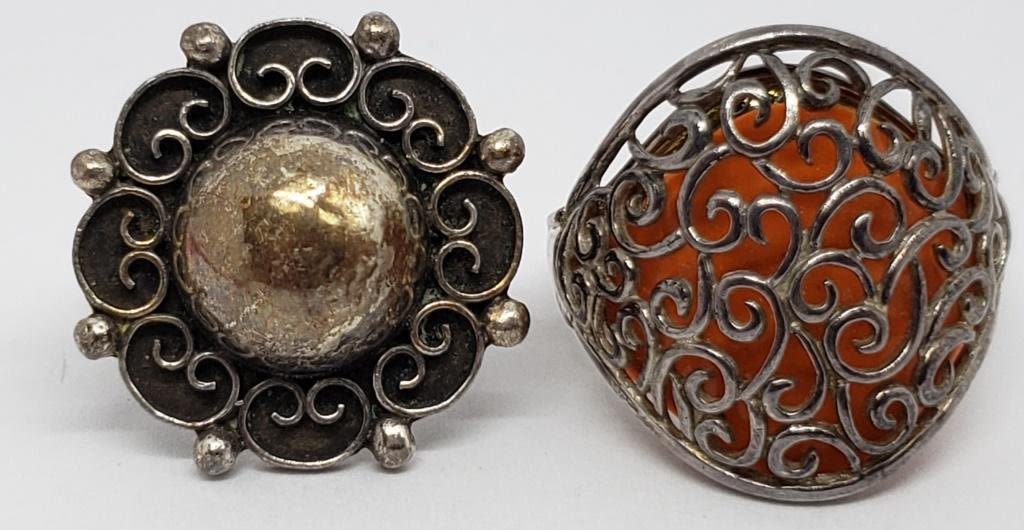 MEXICO (1)CUT OUT SCROLL DESIGN WITH ORANGE ACCENT-RING SIZES 7 & 10-TOTAL 8.9 DWT