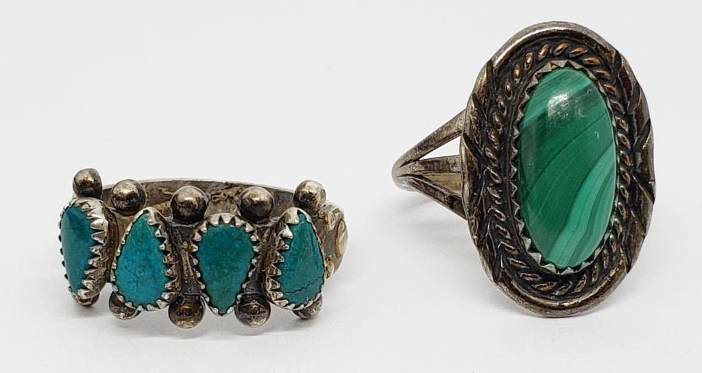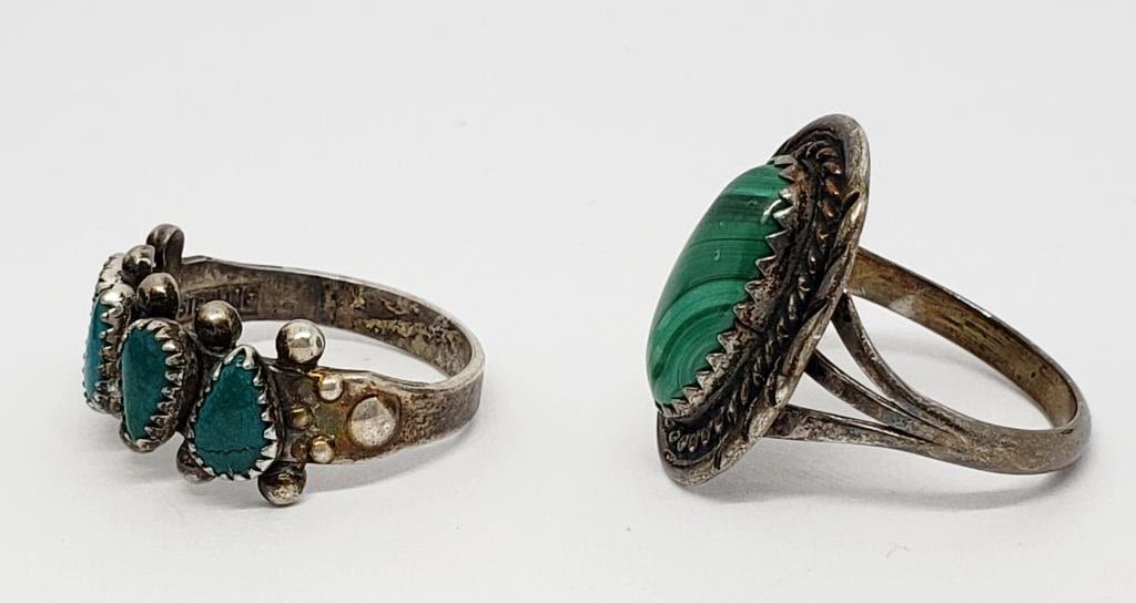 (1)GREEN STONES-BOTH RINGS SIZE 7.5-TOTAL 5 DWT