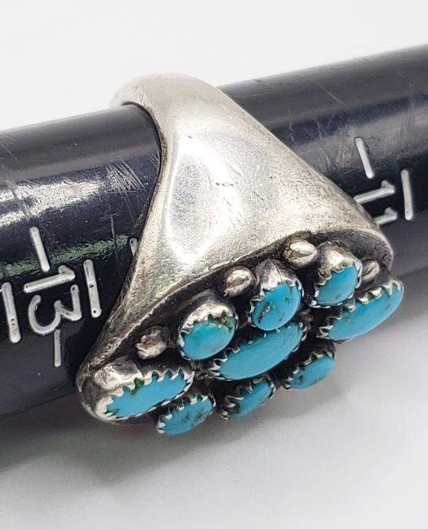 WITH TURQUOISE STONE CLUSTER-RING SIZE 12-TOTAL 17 DWT
