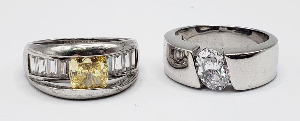 (1)WITH YELLOW CENTER STONE-BOTH RINGS SIZE 8-TOTAL 7.5 DWT