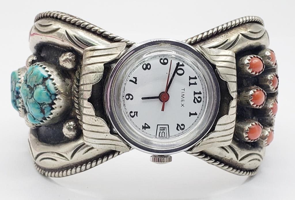 LOADED WITH RED CORAL AND TURQUOISE STONES-TOTAL 64 DWT