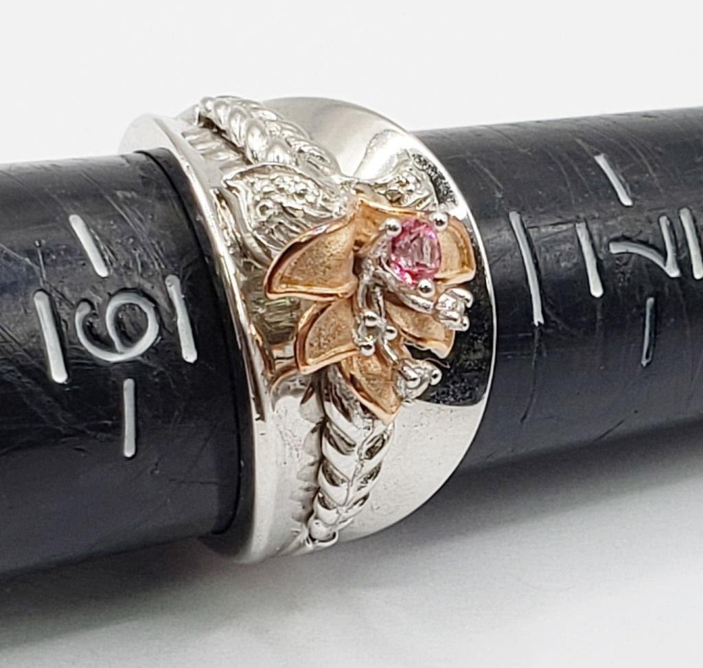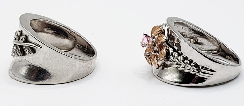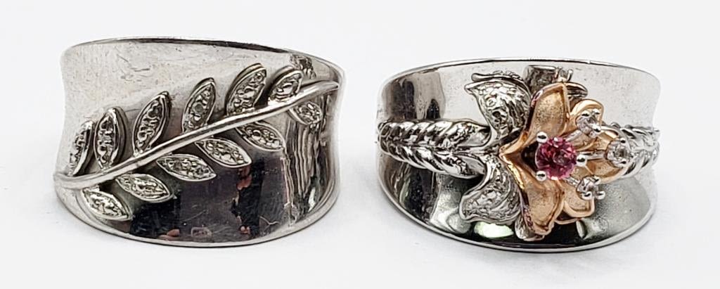 RINGS-(1)CALLA LILLY DESIGN-BOTH RING SIZE 8-TOTAL 8.9 DWT
