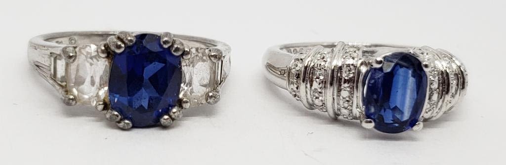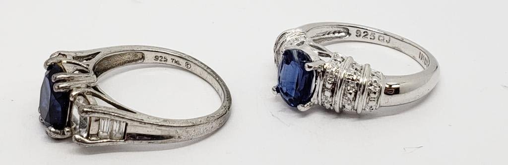 BLUE STONES-CLEAR STONE ACCENTS-BOTH RINGS SIZE 7-TOTAL 4.3 DWT