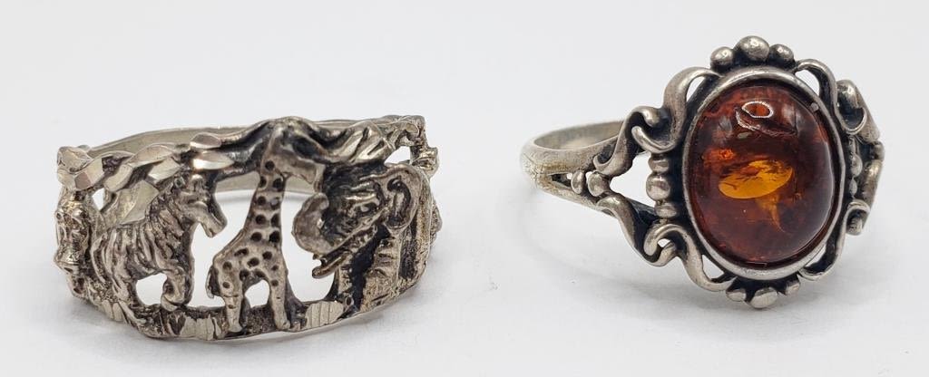 (1)BALTIC AMBER CENTER STONE-RING SIZES 8 & 10-TOTAL 5.8 DWT