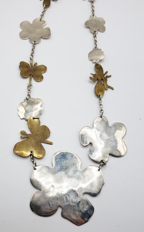 BRASS AND STERLING NECKLACE-TOTAL 26 DWT