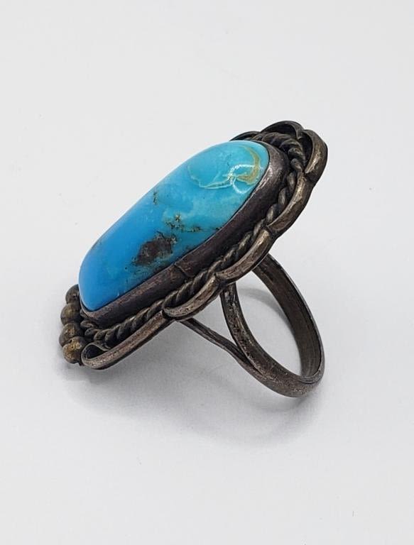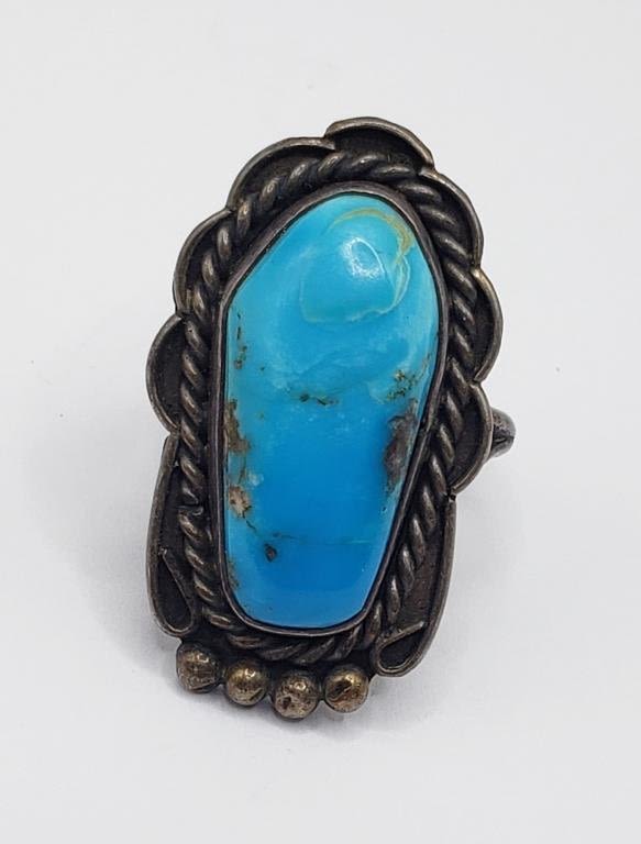 TURQUOISE CENTER STONE-RING SIZE 6.5-TOTAL 4.7 DWT