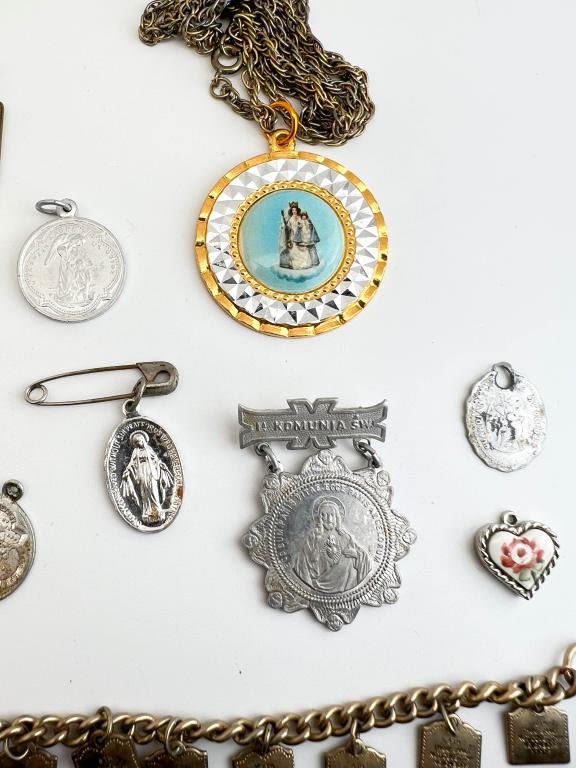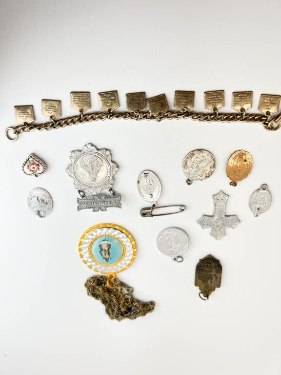 RELIGIOUS LOT ASSORTMENT, 1 ITALY SIGNED NECKLACE