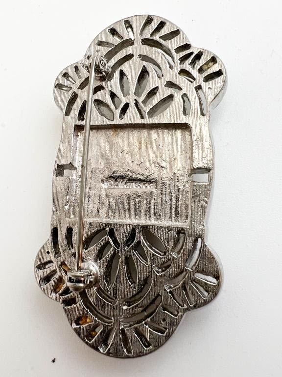 VINTAGE BROOCH, SIGNED, MAY BE MISSING STONES ?