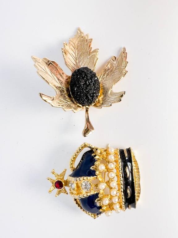 CROWN AND LEAF BROOCHES