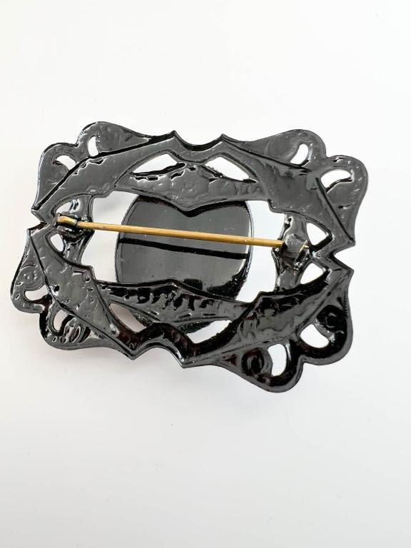 LARGE BLACK BROOCH