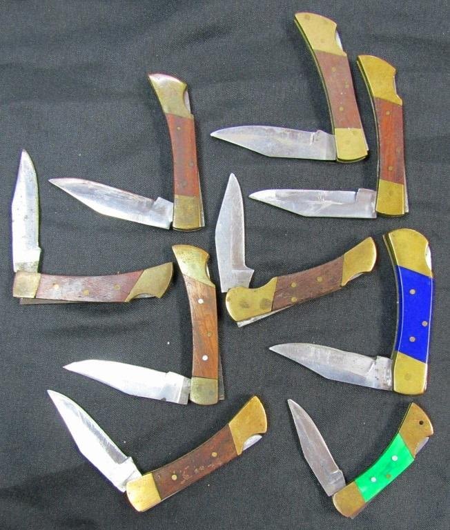 9 different mini Pocket knives all lock back blades made of Pakistan Stainless wood and plastic handles