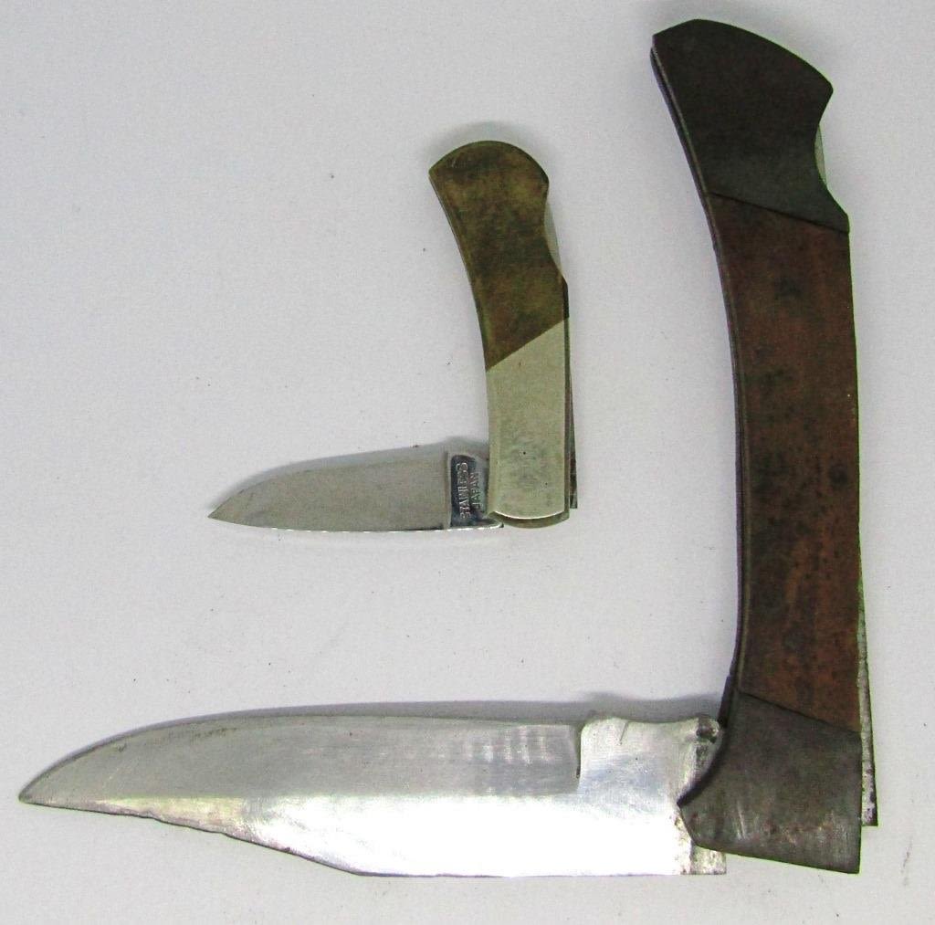 Large 4" Pakistan Steel Kabar pocket knife w/ sheathe and Mini 1.5" Japan Stainless Pocket Knife