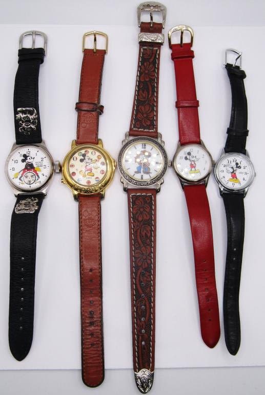 Cowboy Mickey "Made exlusively by Pedre for The Disney Store"; Yellow Glove Mickey Hands "Made exclusively by Pedre for The Disney Store"; 2 Lorus Marked Mickey Mouse Watches; Mickey Mouse White Glove Hands; Untested!