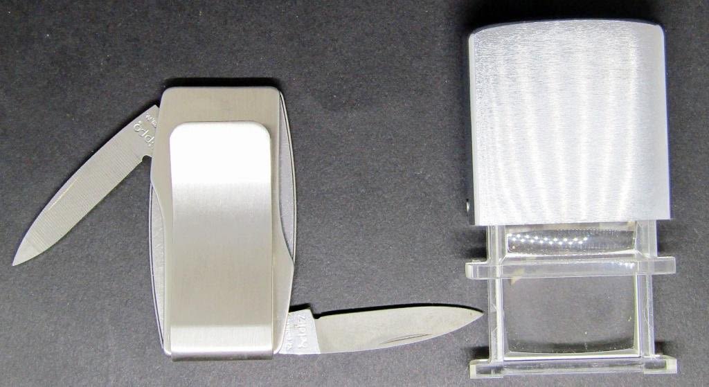 ONE MONEY CLIP KNIFE "HUNTER ENGINEERING COMPANY" ONE ZIPPO MAGNIFIER "B&G TOOL CO"