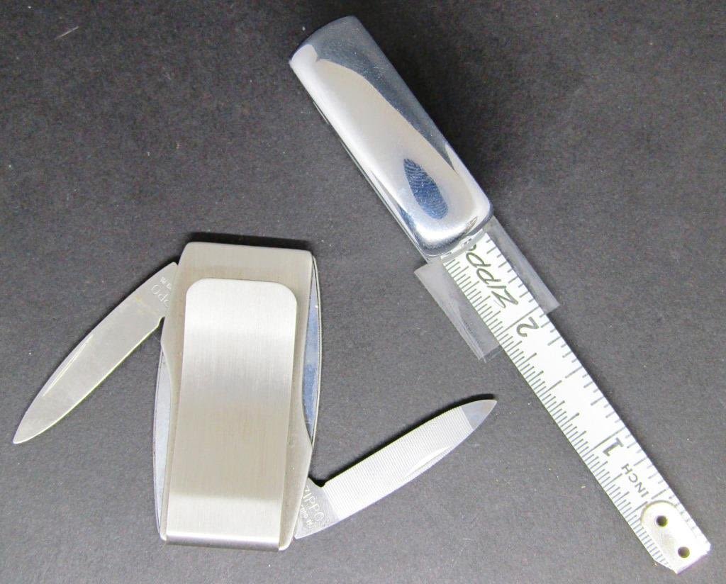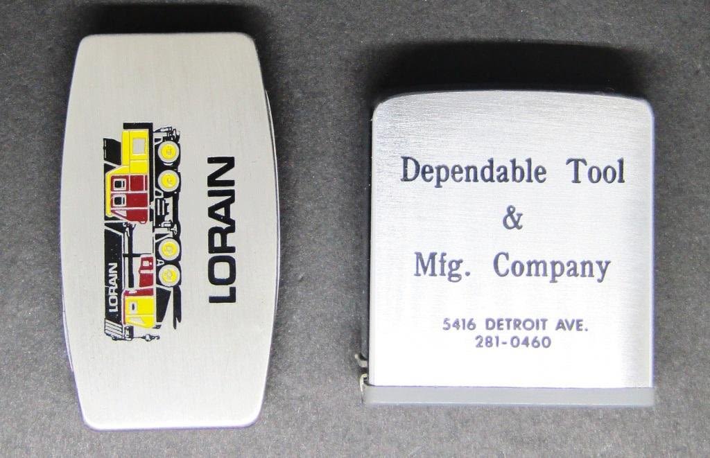 ONE MONEY CLIP KNIFE "LORAIN" ONE MEASURING TAPE "DEPENDABLE TOOL & MFG. COMPANY"