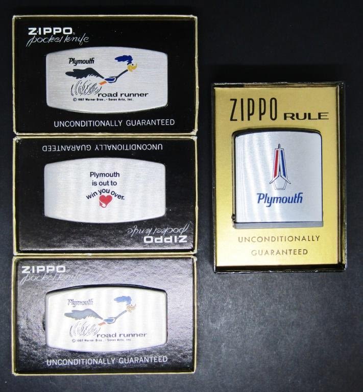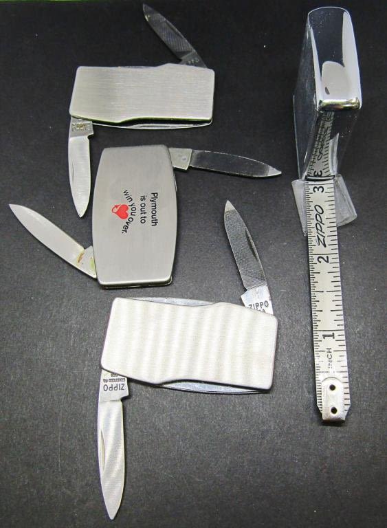 ONE POCKET KNIFE "PLYMOUTH" TWO MONEY CLIP KNIFE "PLYMOUTH ROAD RUNNER " ONE MEASURING TAPE " PLYMOUTH"
