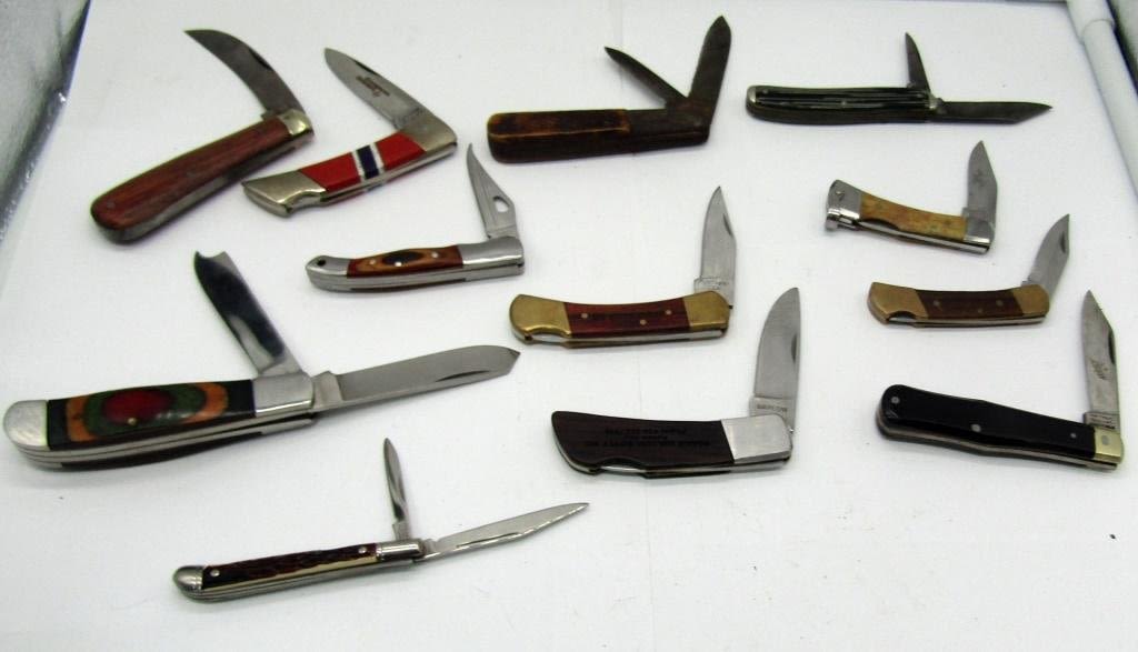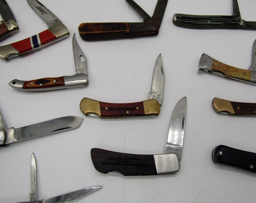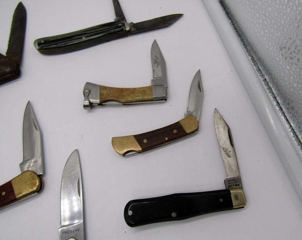 Sheffield, Gerber, Crossman, Barlow blades to name a few. Mini to Medium sized pocket knifes, various blades
