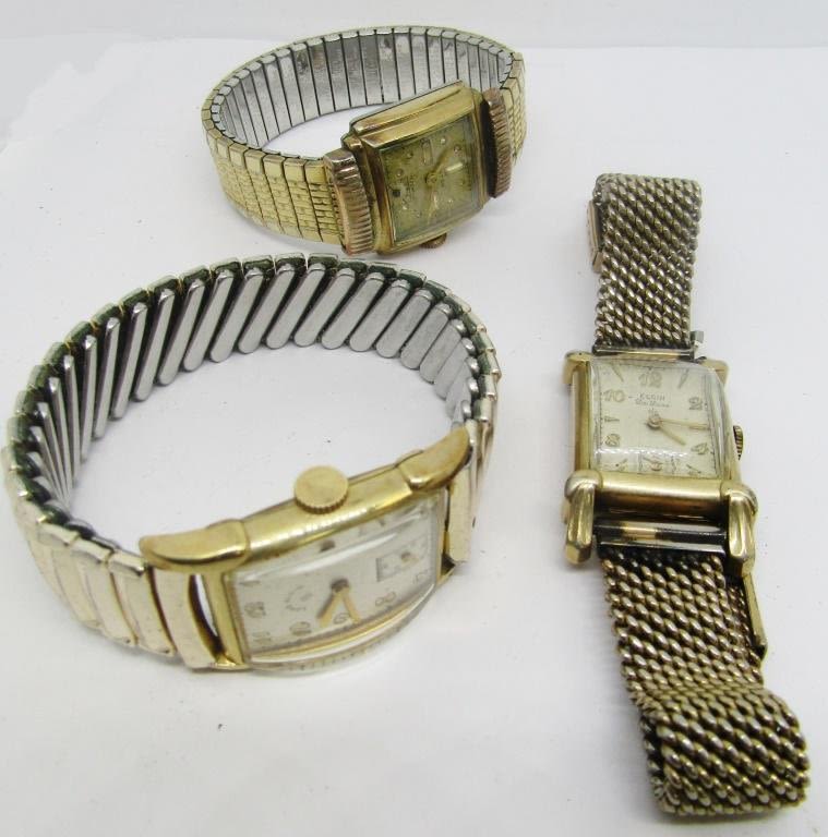 Elgiin and Chaton Brand watchs, all square faces gold toned mens watches – not tested