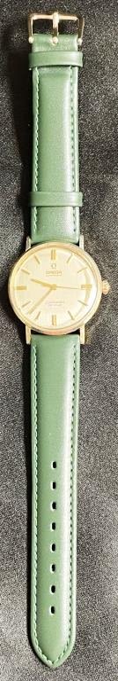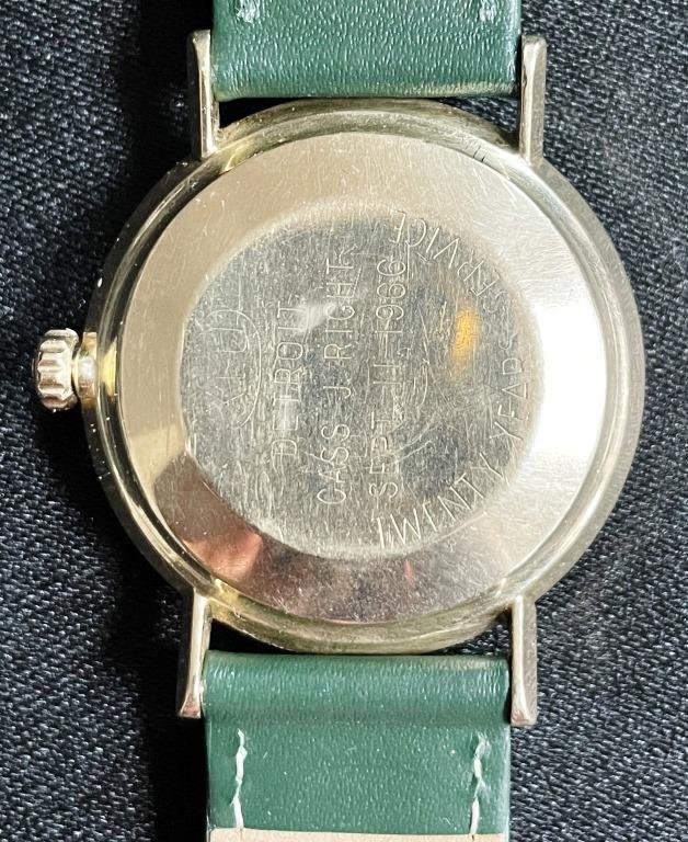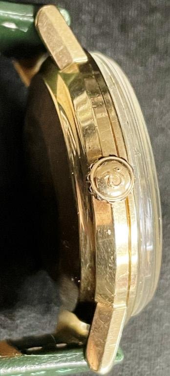 NICE Original Linen Textured Dial; 14KT Yellow Gold Case; 17g. Cal 550 Movement; New Strap; Back Engraved With 1966 Corp Presentation. All Watches in Running Order when catalogued Unless otherwise noted.
