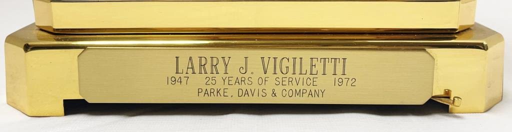 SERIAL #321880, 15 jewel with ORIGINAL BOX, NO PAPERS – WORKING CONDITION – PRESENTED PLAQUE on FRONT