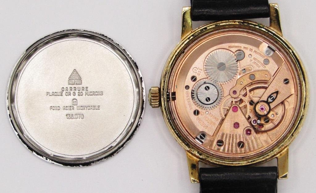 NICE ORIGINAL DIAL, GOLD PLATED CASE w/STAINLESS SCREWBACK, 17 jewel CAL 613 MANUAL MOVEMENT, ORIGINAL SIGNED STRAP & BUCKLE, 34mm, NICE WATCH! All Watches in Running Order when catalogued Unless