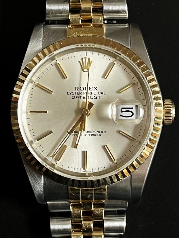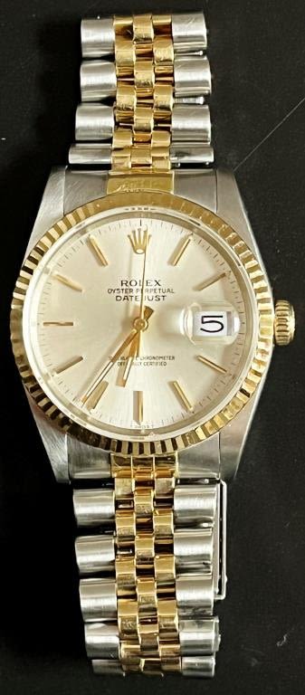 NICE SILVER DIAL, STAINLESS AND GOLD JUBILEE BRACELET, 31 jewels CAL 3135 MOVEMENT, BRACELET SHOWS SOME WEAR, CASEBACK WITH PRESENTATION 2004, 36mm, 2 EXTRA LINKS, SERIAL NUMBER E All Watches in Running Order
