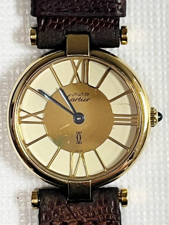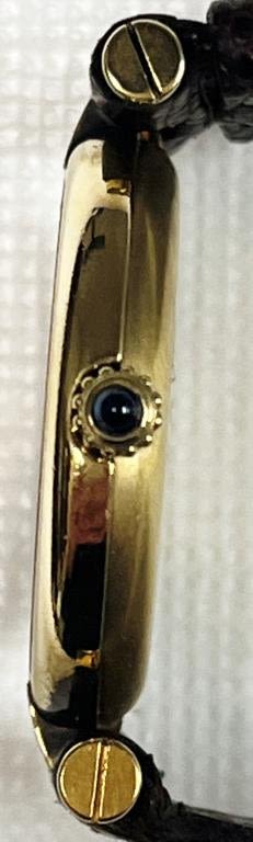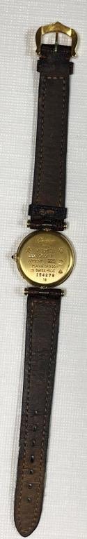 TRIPLE SIGNED, QUARTZ MOV’T WITH FRESH BATTERY, GOLD PLATED STERLING CASE – VERMEIL, 23mm DIAMETER, ORIGINAL STRAP AND BUCKLE All Watches in Running Order when catalogued Unless otherwise noted.