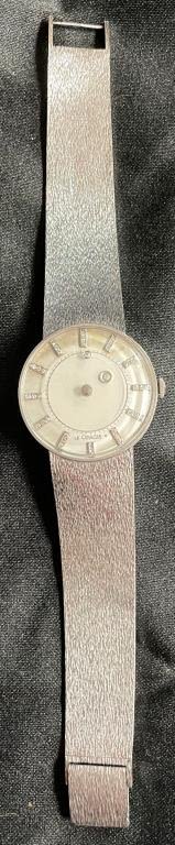 Original Silver Diamond Dial and Diamond Minute/Hour Disks; White Gold Case and Bracelet; 17 Jewel Cal 480/cw Movement; Case Reference 727-722-103D; Bracelet Length = 7 1/2"; Watch Weight = 68 gms. All Watches in