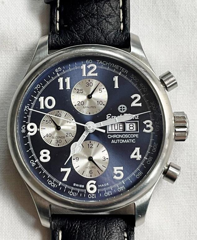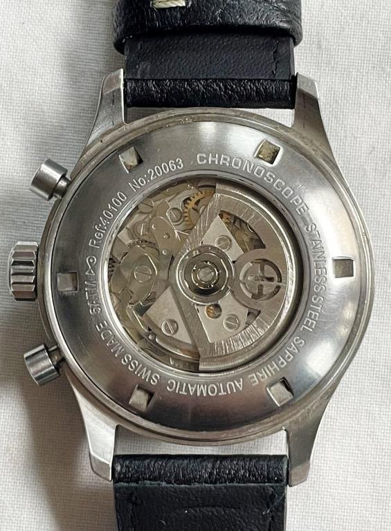 Stainless Steel; Triple Signed; Automatic Valuoux Movement; 44mm Reference 40100; New Strap with Original Buckle. All Watches in Running Order when catalogued Unless otherwise noted.