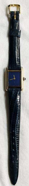 Original Blue Face; Gold Plated Sterling Case; 17 Jewel Signed Movement; New Strap; 27×20 Case Size. All Watches in Running Order when catalogued Unless otherwise noted.
