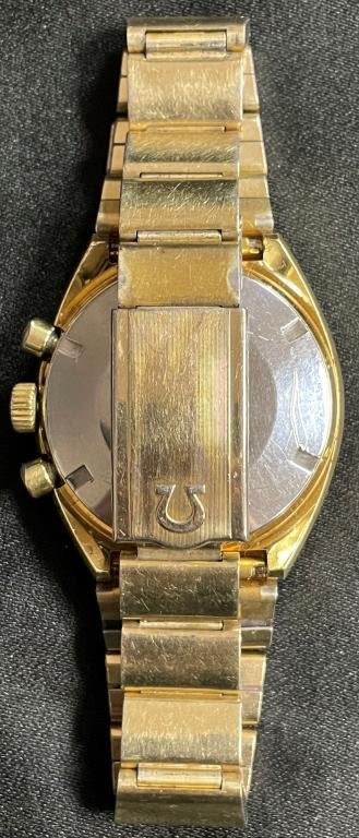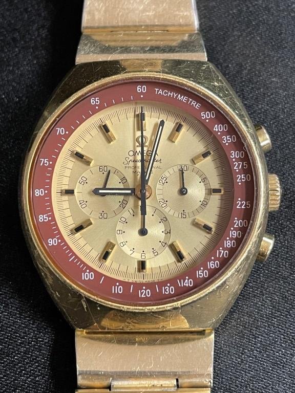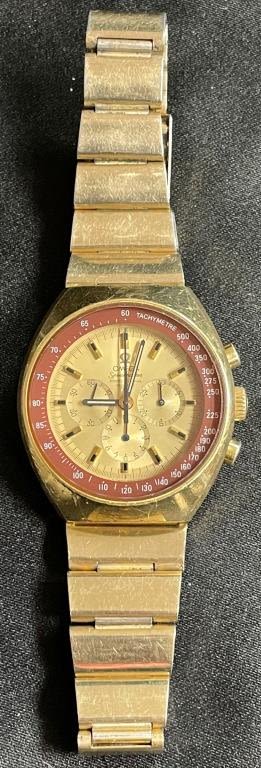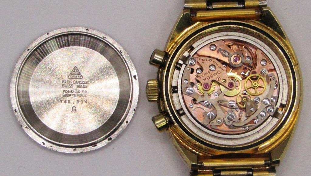 Perfect Original Dial, Hands, And Crystal; Gold Plated Case With Stainless Back (Speedmaster Logo); 17 Jewel Reference 861 Movement; Matching Signed Bracelet with Ample Length; Case Referernce 145.034; Complete