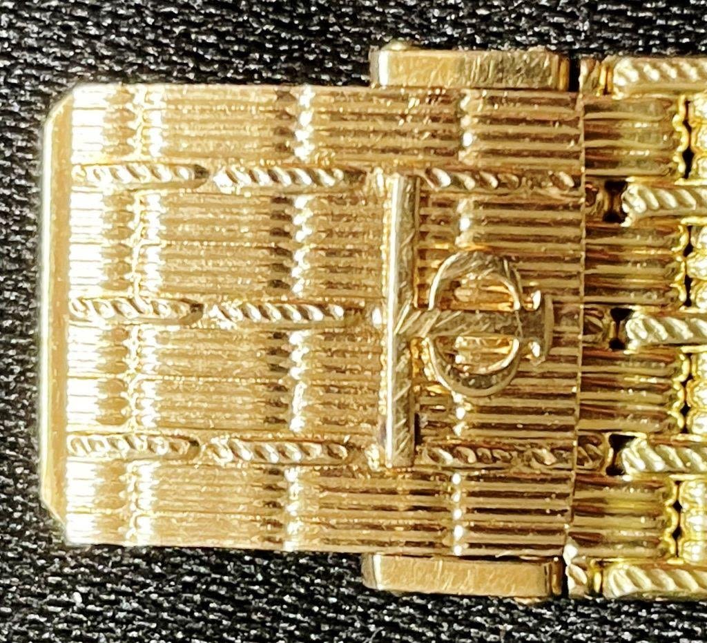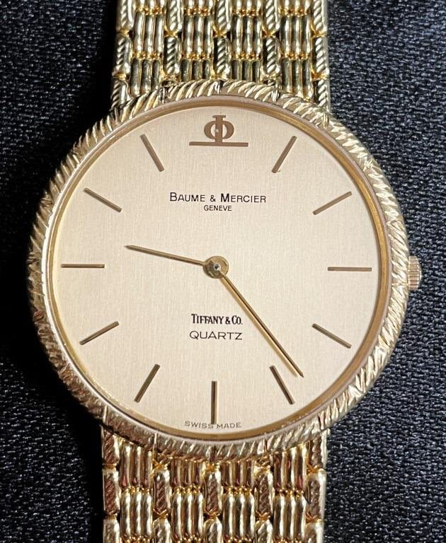 Retailed By Tiffany Co.; 18KT Yellow Gold With Woven Mesh Bracelet; Quartz Mov’t Keeping Time With Fresh Battery; 7.25" Bracelet Length; 72.7 GMS Total Weight. All Watches in Running Order when catalogued